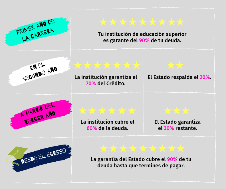 Sin embargo, si no hay acuerdo alguno, el banco podrá cobrar la garantía al Estado y/o a tu institución de educación superior.