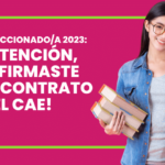 El viernes 28 de julio 2023, terminó el plazo para firmar el contrato del Crédito CAE 2023. La documentación que suscribiste como estudiante seleccionado/a con esta ayuda estudiantil, continuará su tramitación legal: será validada por un Notario Público, y luego, revisada por BancoEstado (el banco administrador de los créditos firmados este año).