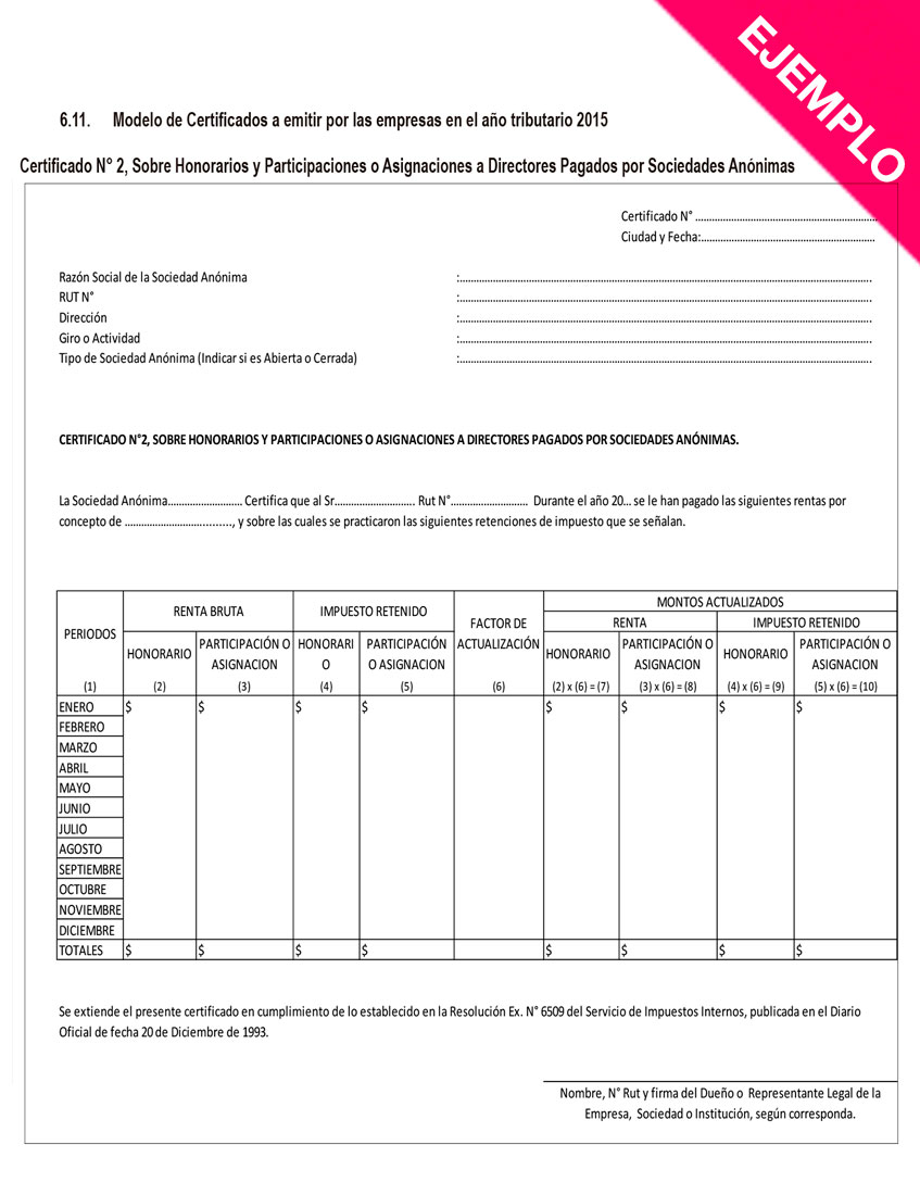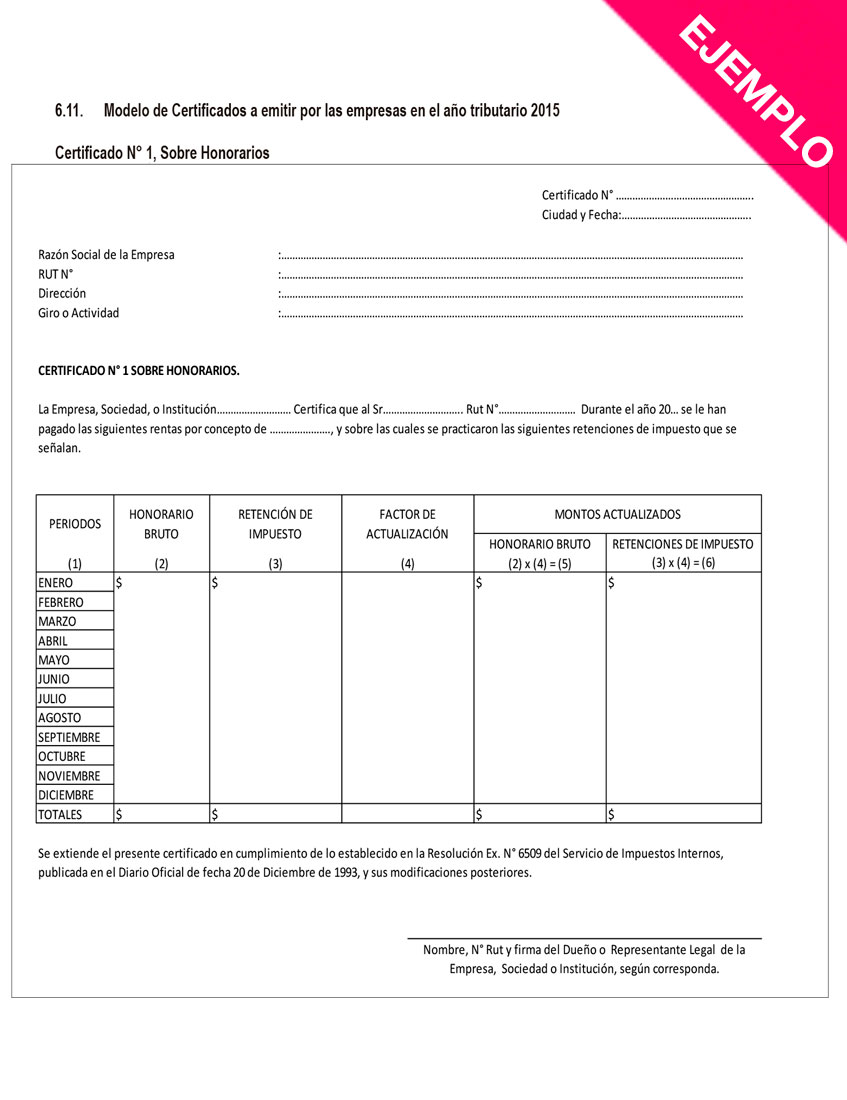 Ten presente que si prestas servicios como comisionista a una empresa que no está constituida como Sociedad Anónima, deberás adjuntar a tu postulación, además de la Declaración Jurada N°1879, el “Certificado N°1, sobre Honorarios” (ver ejemplo), disponible también en www.sii.cl.